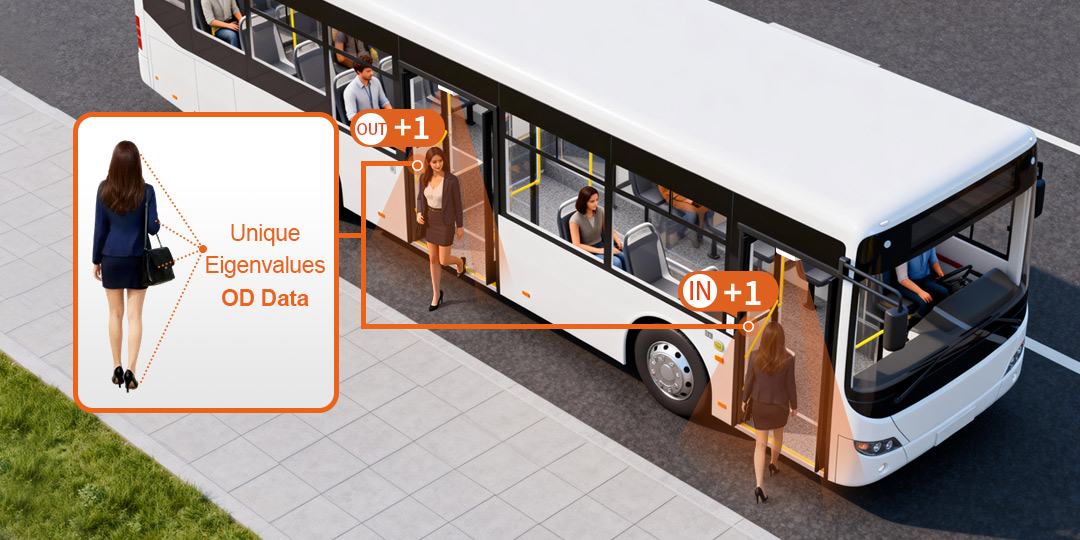 The device uses built-in AI to track passengers in real time, capture unique non-facial features, and generate OD data by matching these features during the trip.