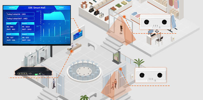 time of flight (ToF), infrared blocking, etc. to accurately detect and track customer flow data.