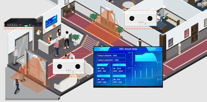 time of flight (ToF), infrared blocking, etc. to accurately detect and track customer flow data.